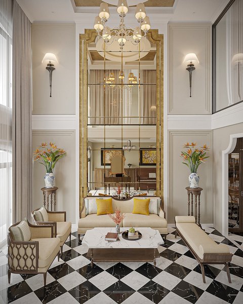 1. Không gian Phòng khách: Sự bề thế và quyền quý