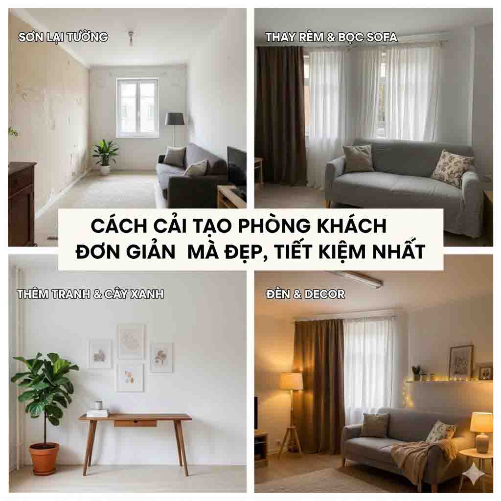 Cải tạo phòng khách không nhất thiết phải tốn kém hay phức tạp. Chỉ cần thay đổi hợp lý về màu sắc, bố cục, ánh sáng và nội thất, bạn hoàn toàn có thể sở hữu một phòng khách đơn giản mà đẹp, tiết kiệm nhất.