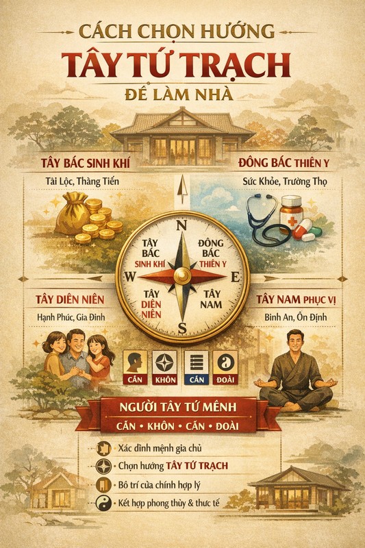 Khi được áp dụng đúng và linh hoạt, Tây Tứ Trạch không chỉ mang ý nghĩa phong thủy, mà còn giúp tạo nên một không gian sống hài hòa, dễ chịu và vững vàng cho cả gia đình trong suốt nhiều năm dài.