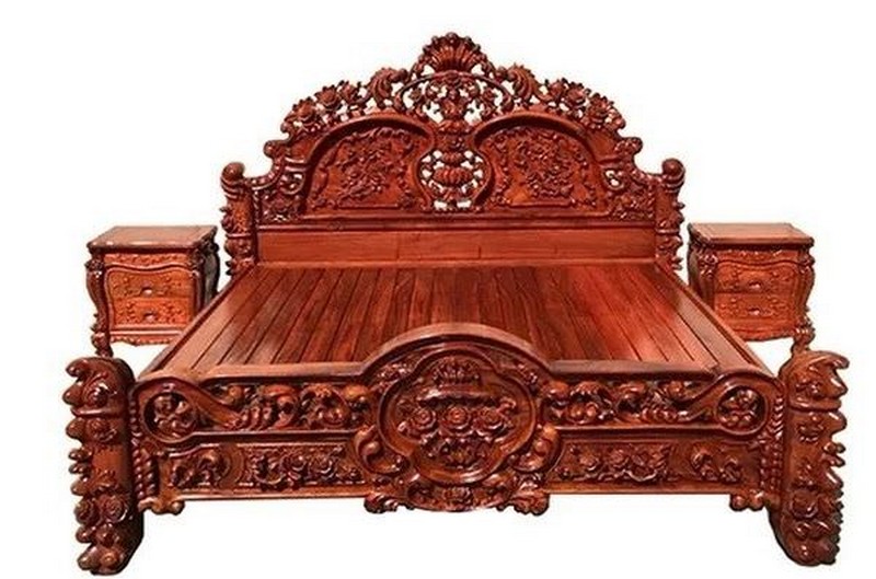 Gỗ xá xị được ung dụng trong thiết kế nội thất, ở đây là một khung giường gỗ tinh xảo đẹp mắt