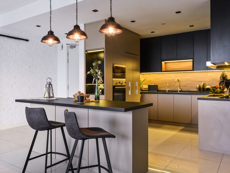 Không gian bếp của người mệnh Kim nên ưu tiên tông sáng kết hợp ánh kim nhẹ, vừa hiện đại vừa mang năng lượng tích cực.