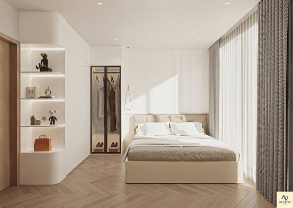 Việc lựa chọn màu sắc tủ quần áo hài hòa với giường ngủ và sàn nhà sẽ giúp không gian phòng ngủ trở nên đồng bộ và dễ chịu hơn.