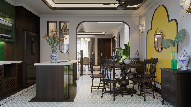 Mẫu phòng bếp phong cách thiết kế nội thất Indochine