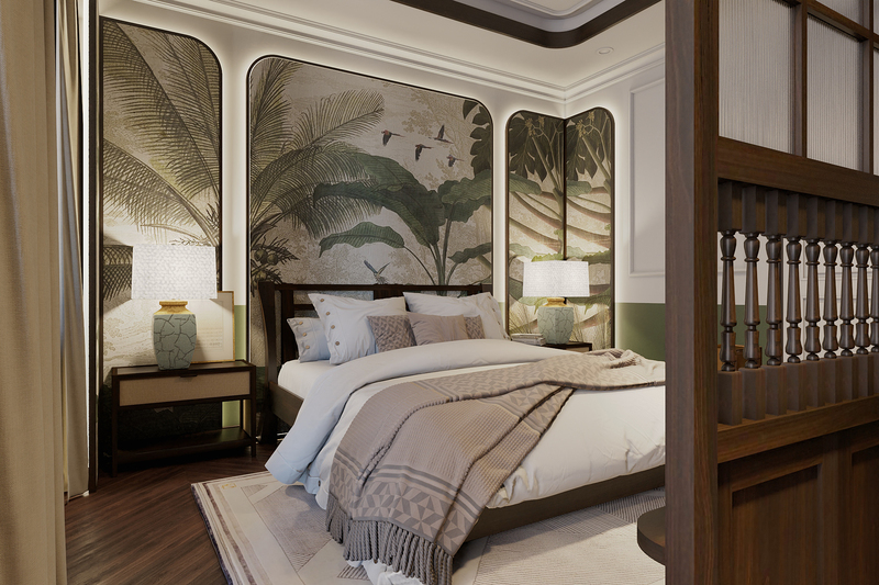 Mẫu phòng ngủ phong cách nội thất Đông Dương