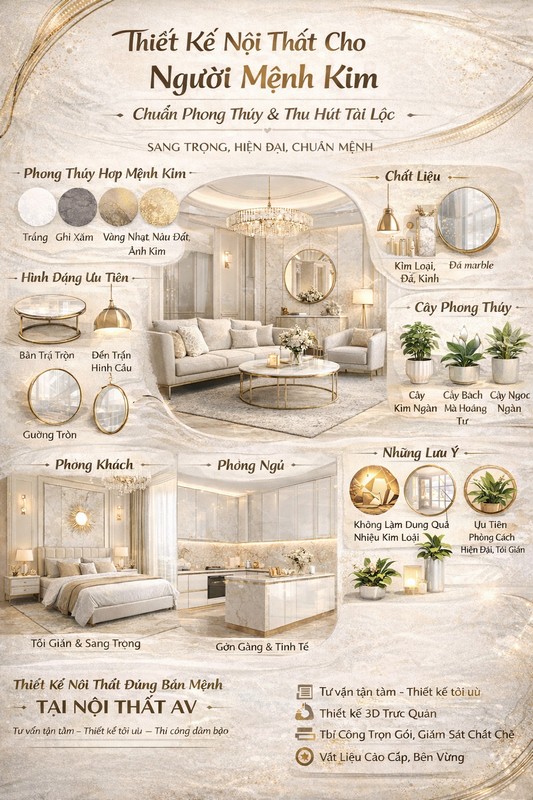 Nếu bạn đang tìm giải pháp thiết kế nội thất chuẩn mệnh Kim, đừng ngần ngại liên hệ Nội Thất AV để được tư vấn chi tiết và sở hữu không gian sống lý tưởng nhất.